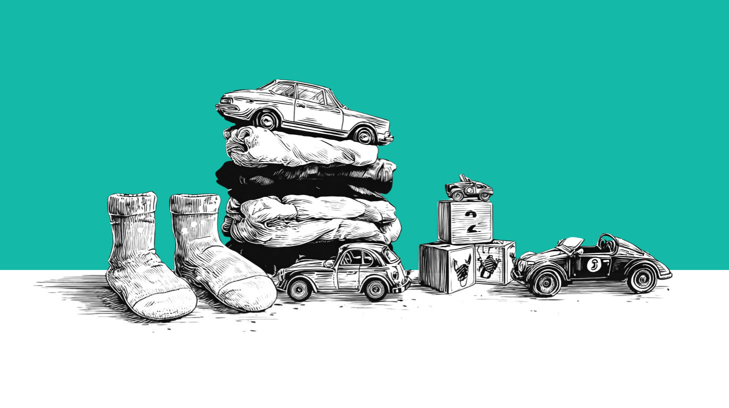 Post-laundry, dump all the socks on the floor. "Find all the truck socks!" He groups them. "Now find their friends!" He matches pairs.
